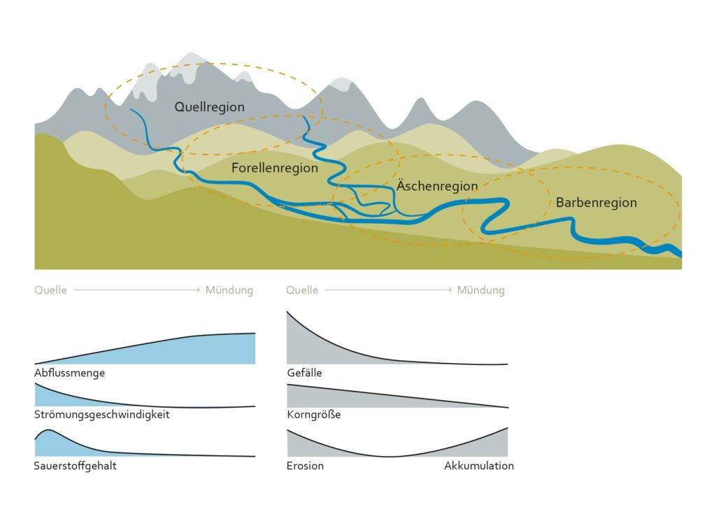 Als oberste Fließgewässerregion ist die Quellregion von Extremen geprägt. Sie bildet nur dann einen geeigneten Fischlebensraum, wenn geeignete Bedingungen für alle Lebensstadien vorherrschen.